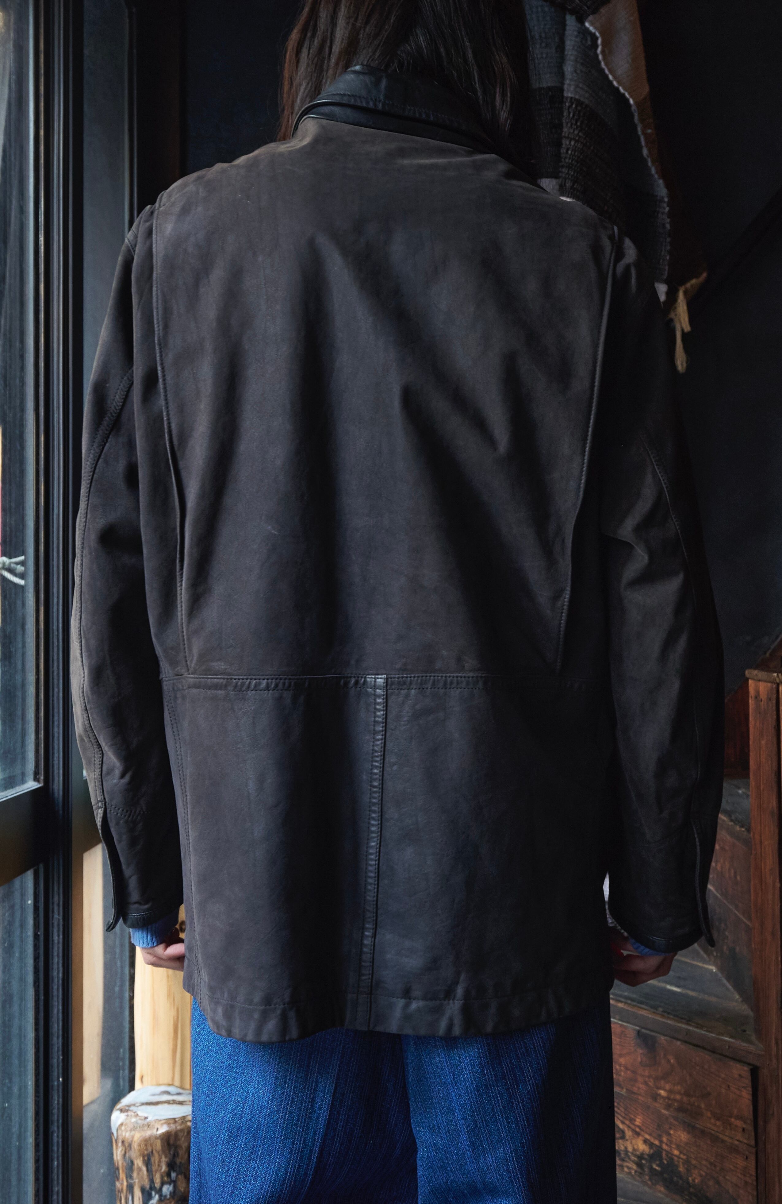 ISSEY MIYAKE odds on Deformed pattern leather coverall jacket