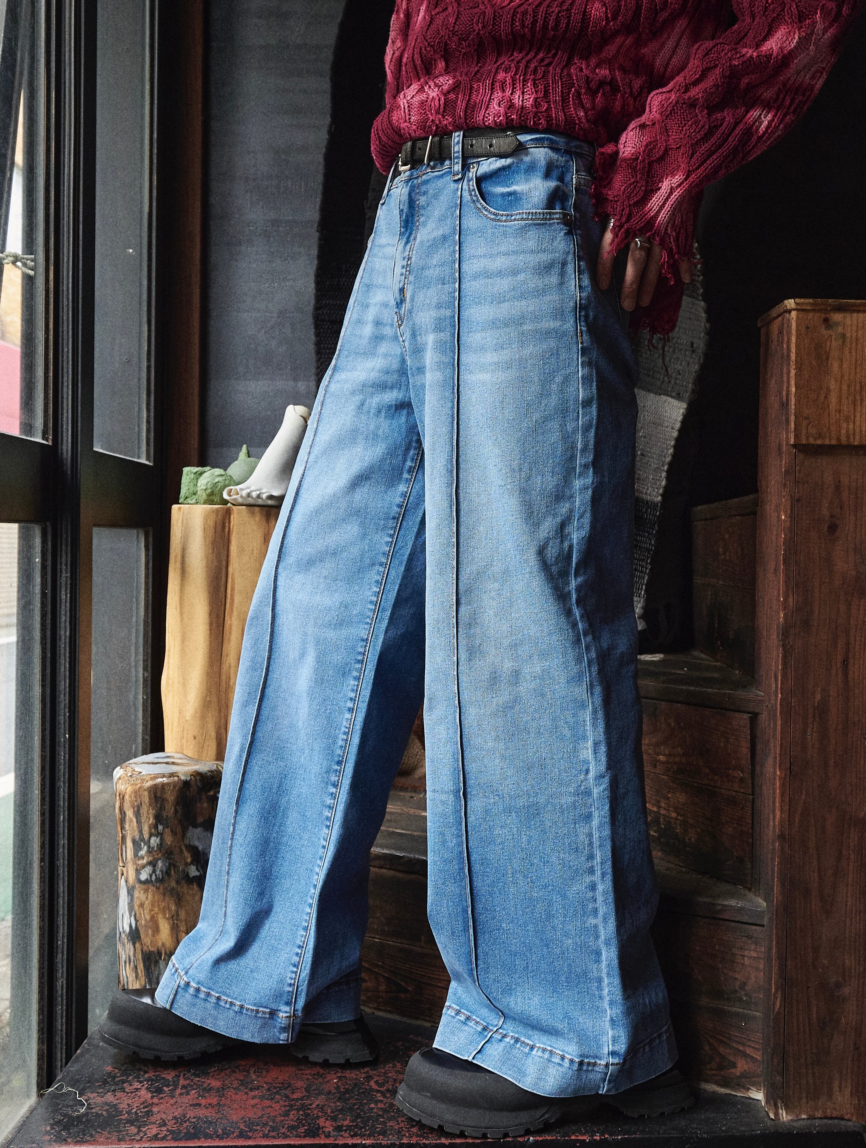 US 2010s〜 Faded indigo center press baggy denim