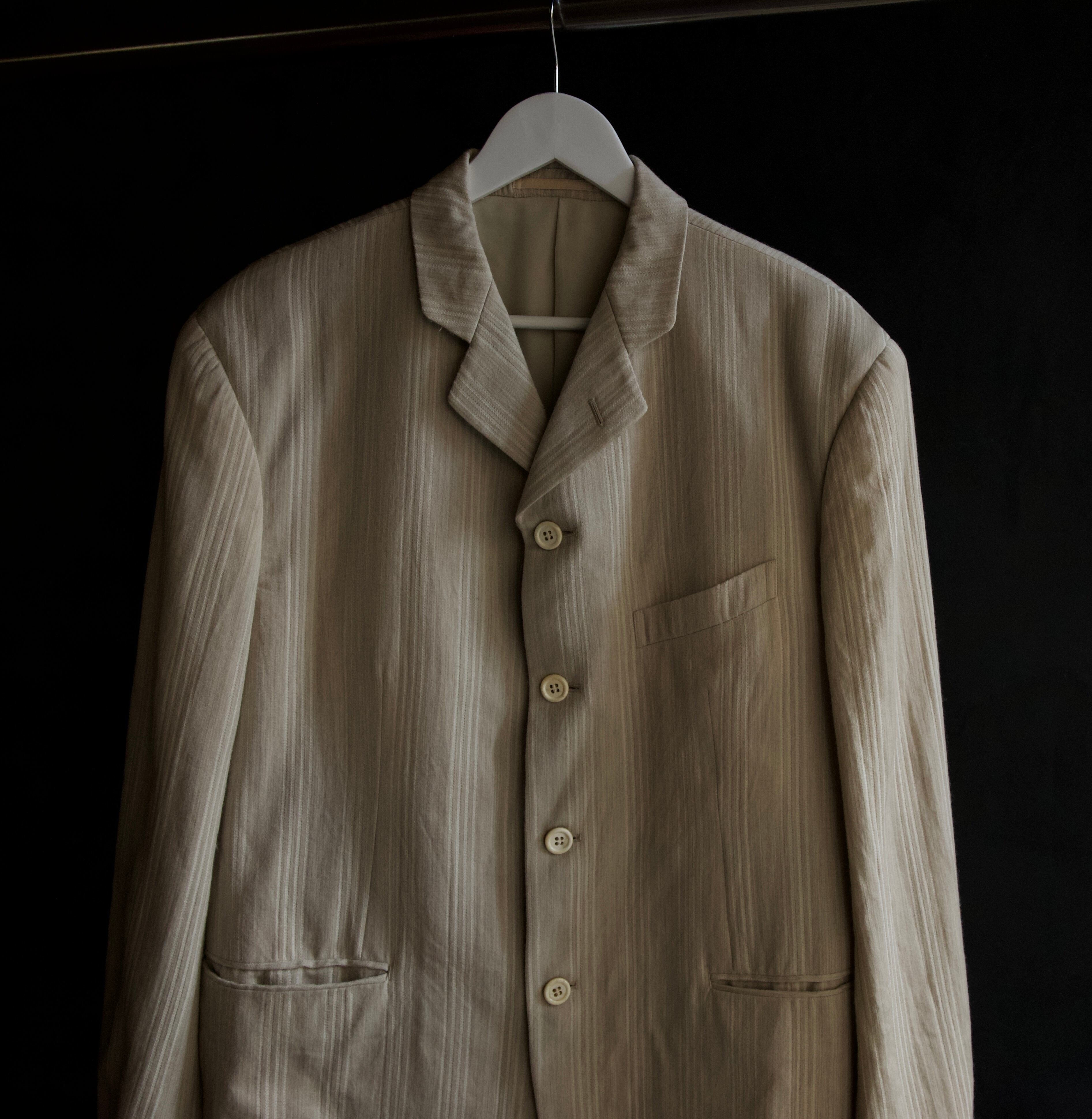 Comme des Garçons Homme Plus White woven striped wool single tailored jacket