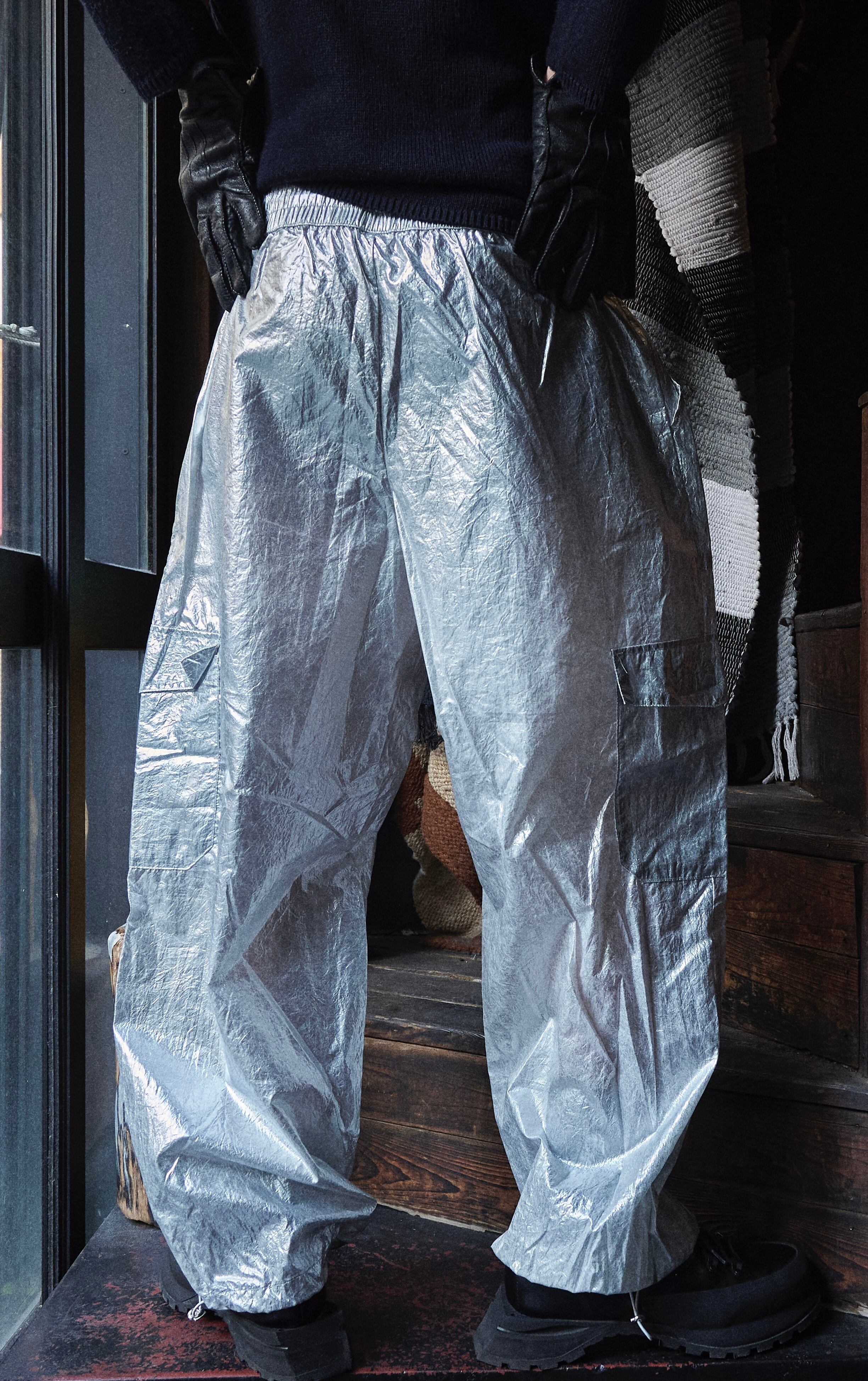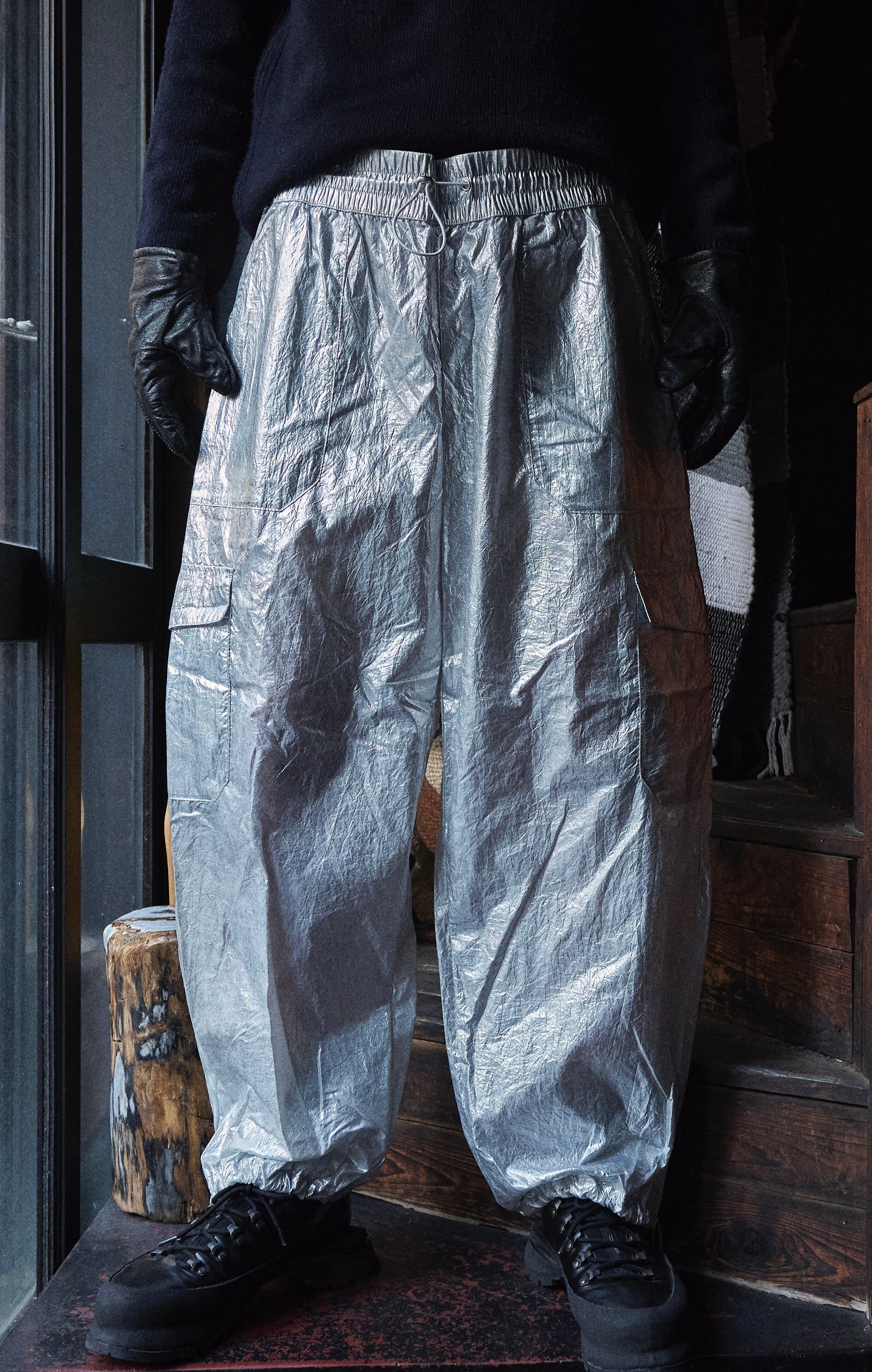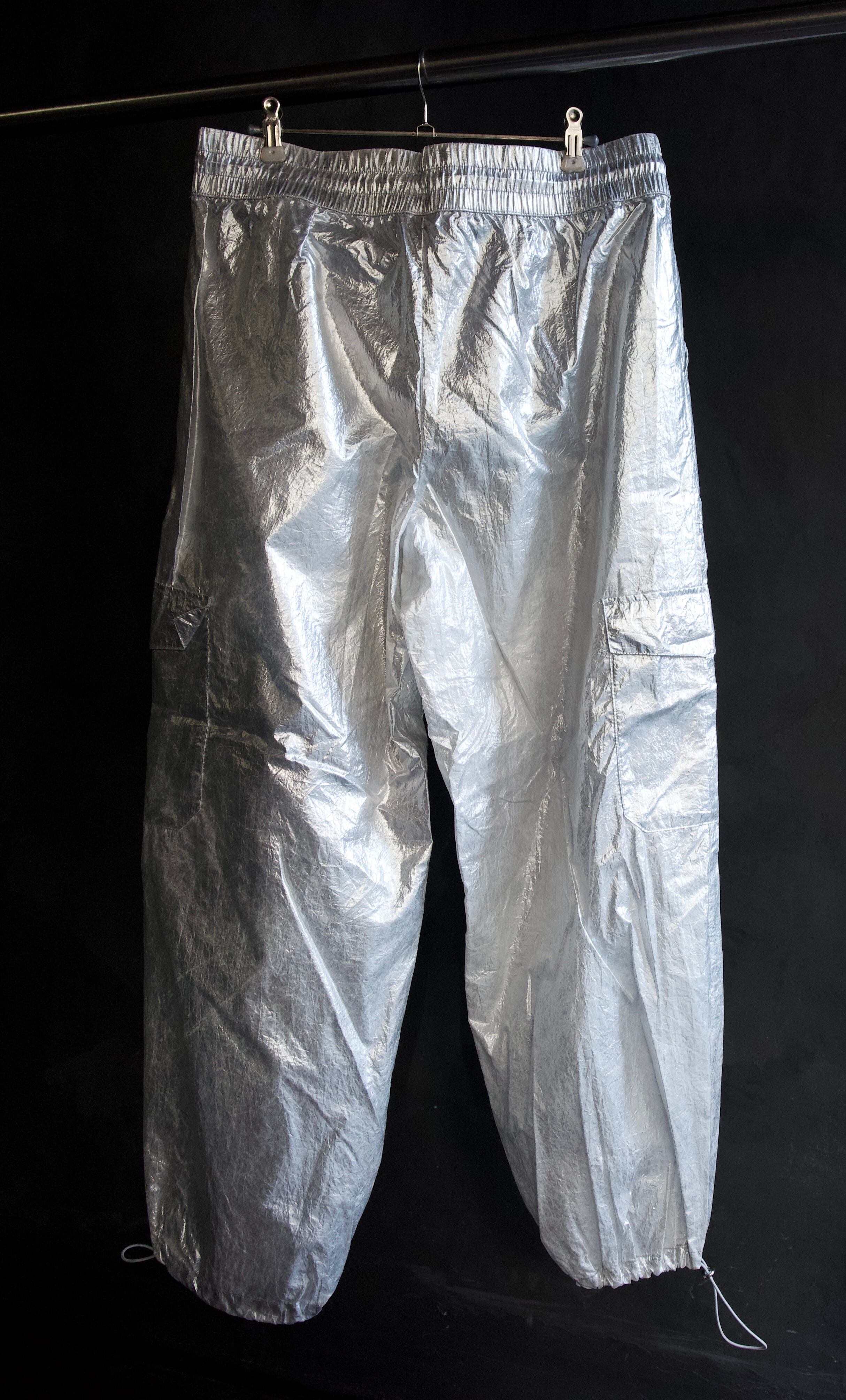 US 2010s silver metallic processed baggy pattern nylon cargo pants