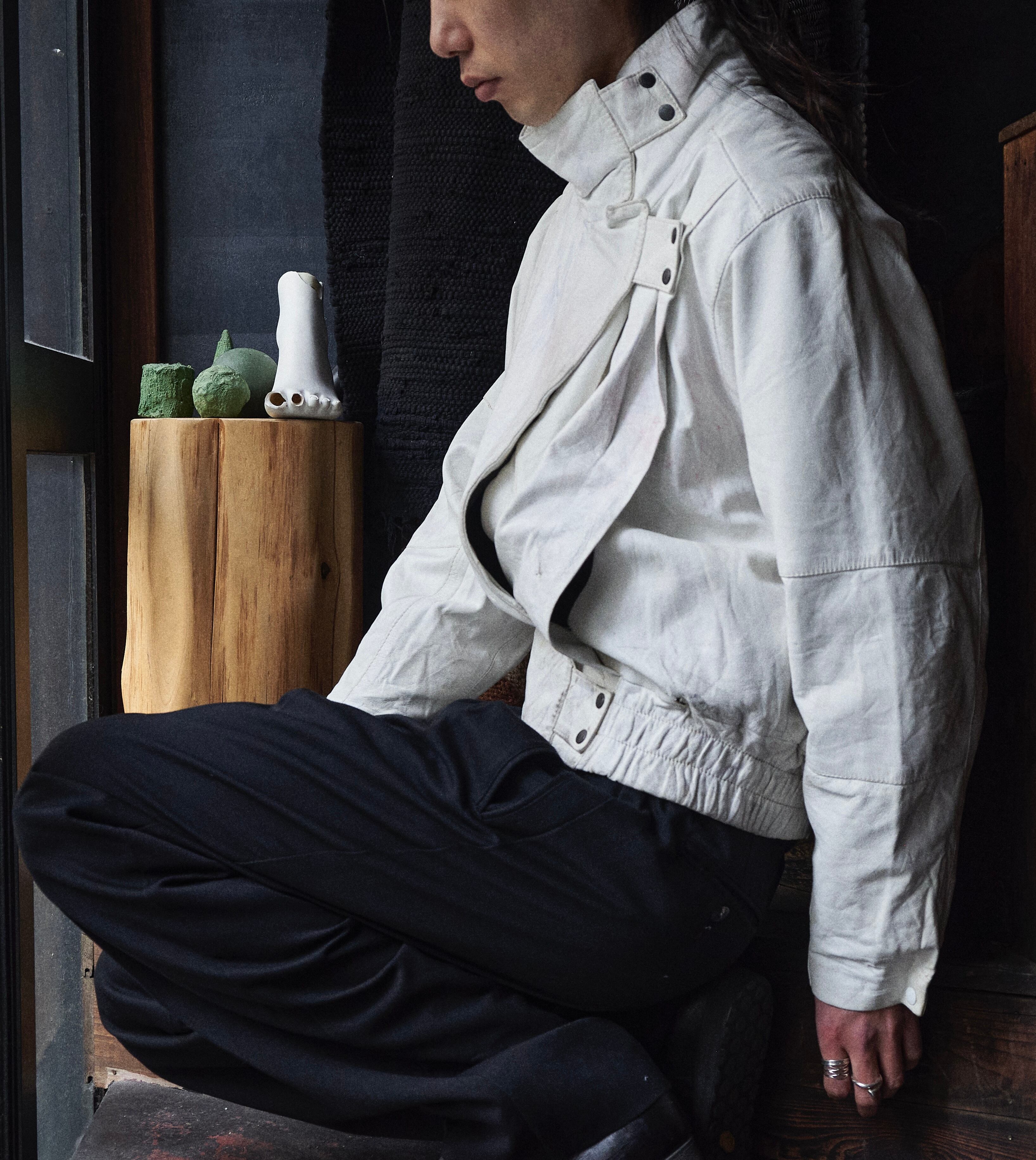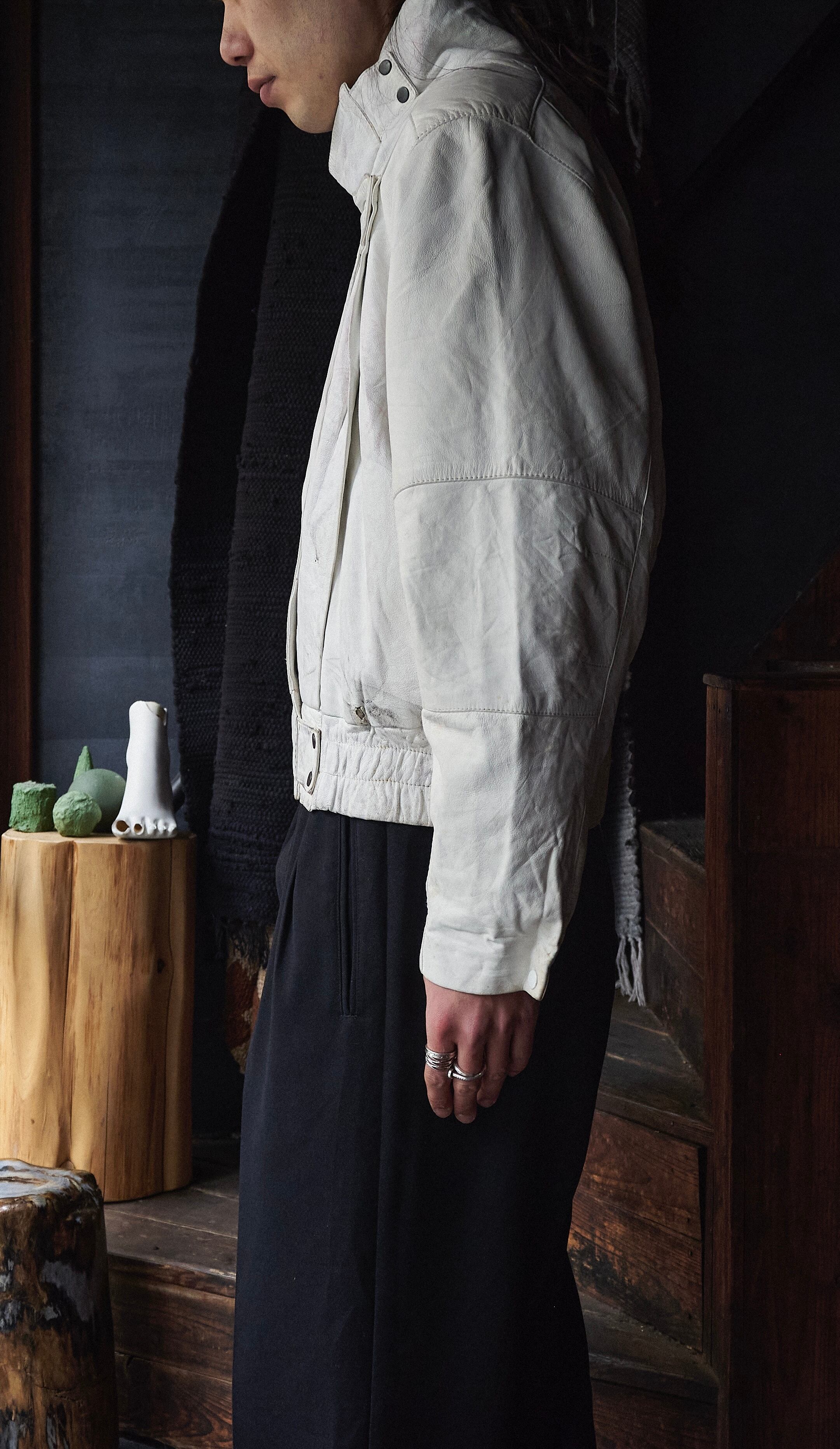 US 80s Dirty White Leather High Neck Short Length Jacket