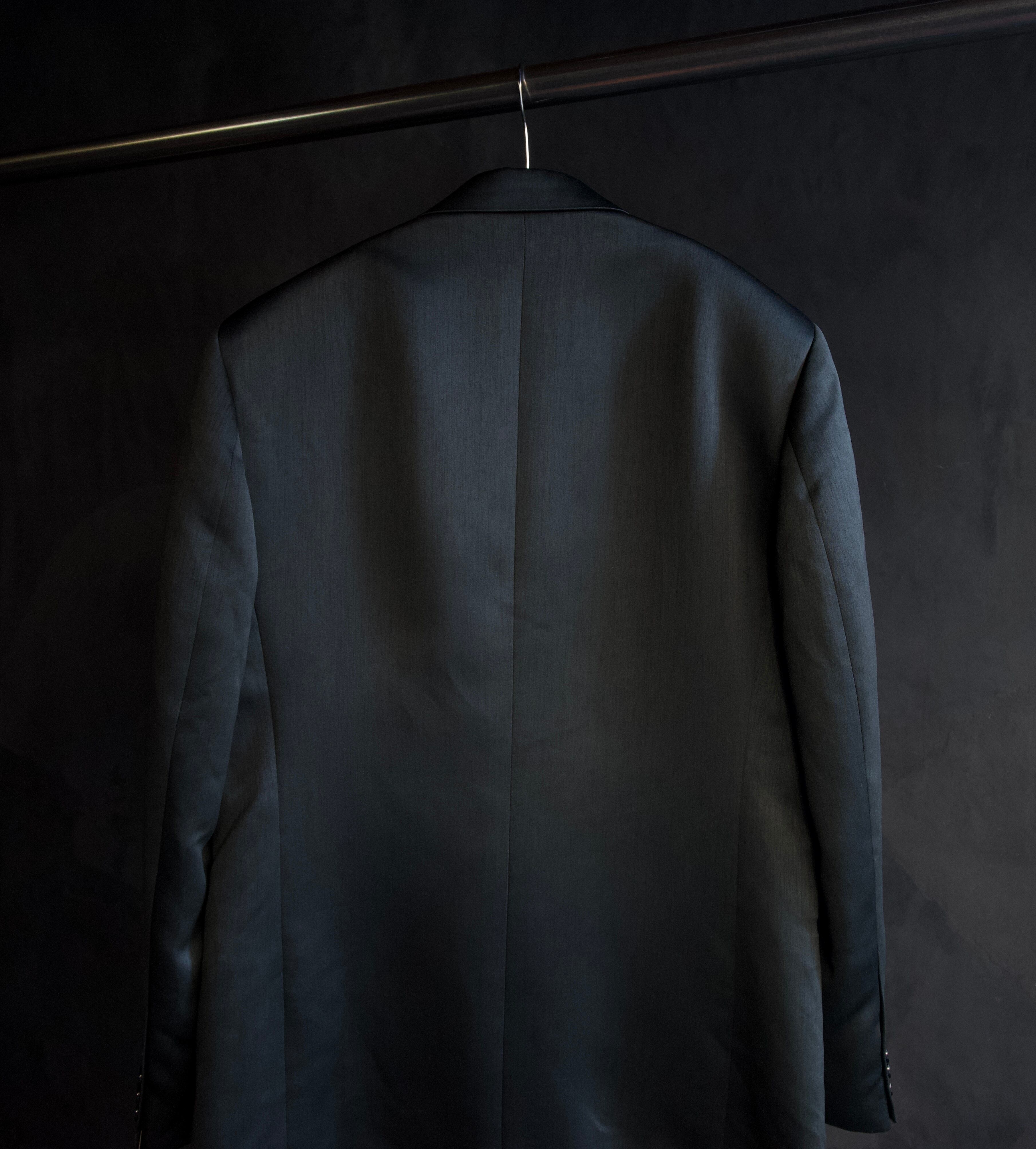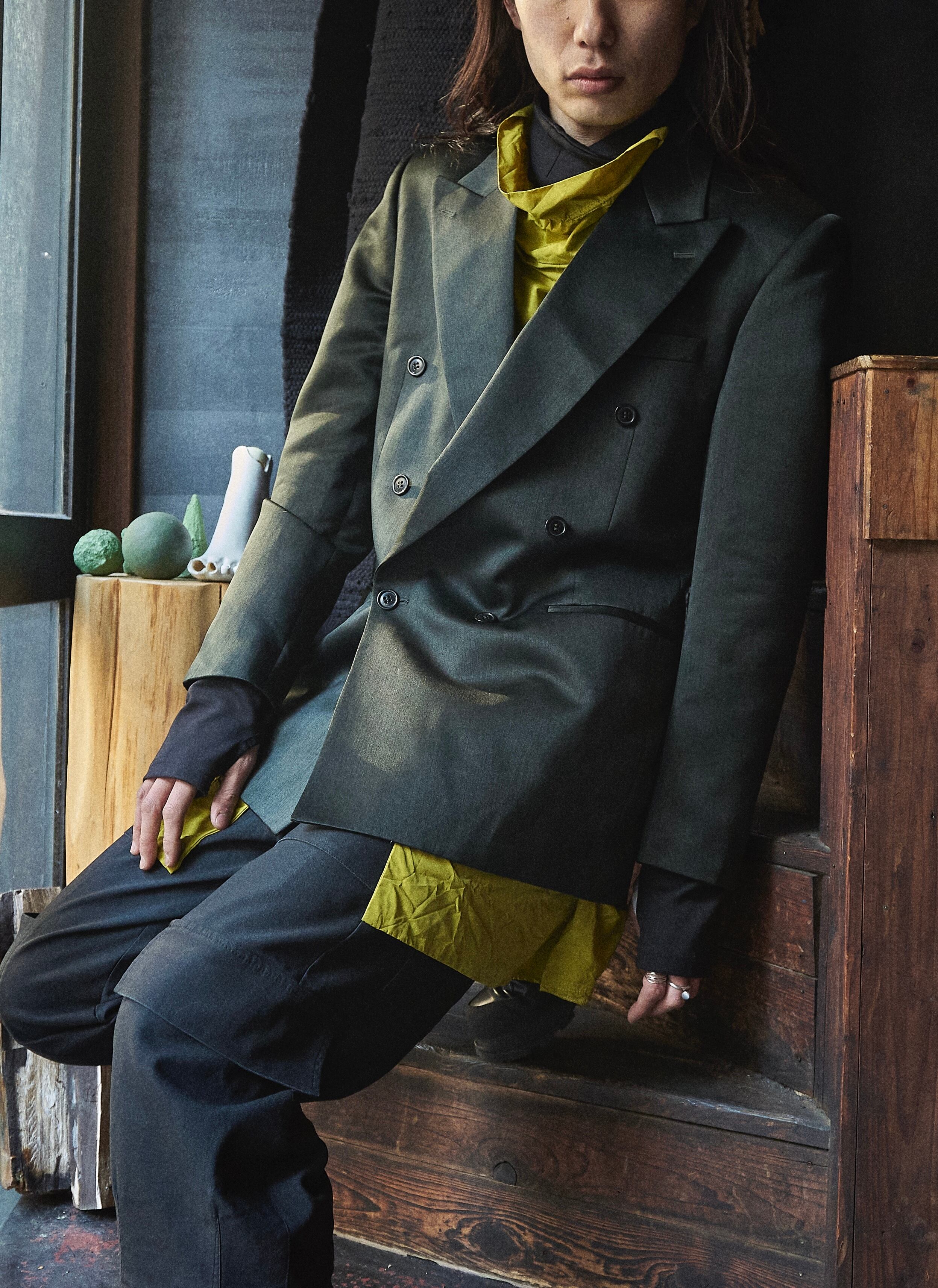 US 2000s shiny green NYLON fabric double breasted tailored jacket