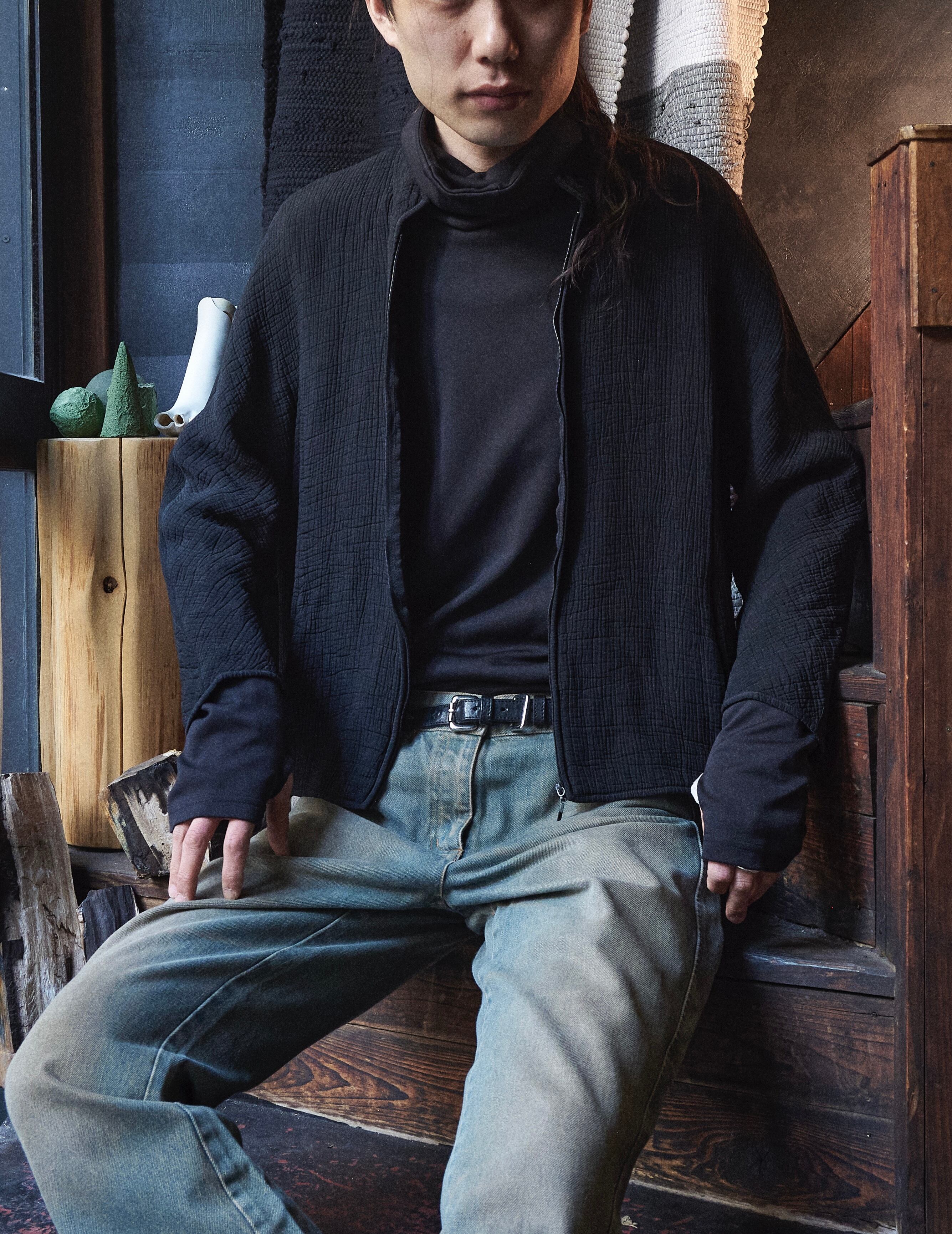 US 2000s - Rayon x silk stand-up collar jacket that looks like elephant leather